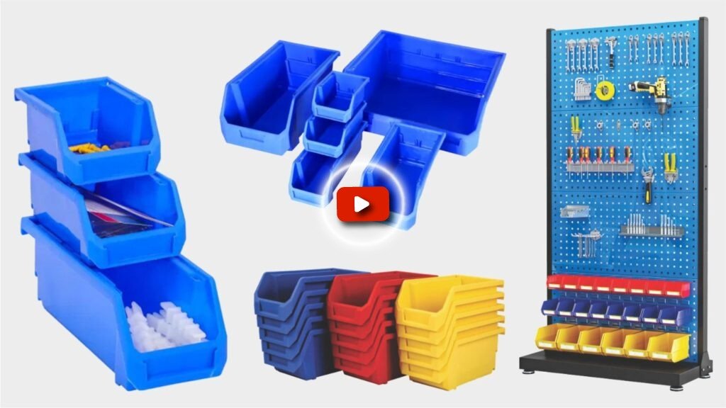 The UK-Model plastic bin box combines rugged polypropylene construction with a space-saving modular design, ideal for racking, shelving, or wall-mounted storage systems.
